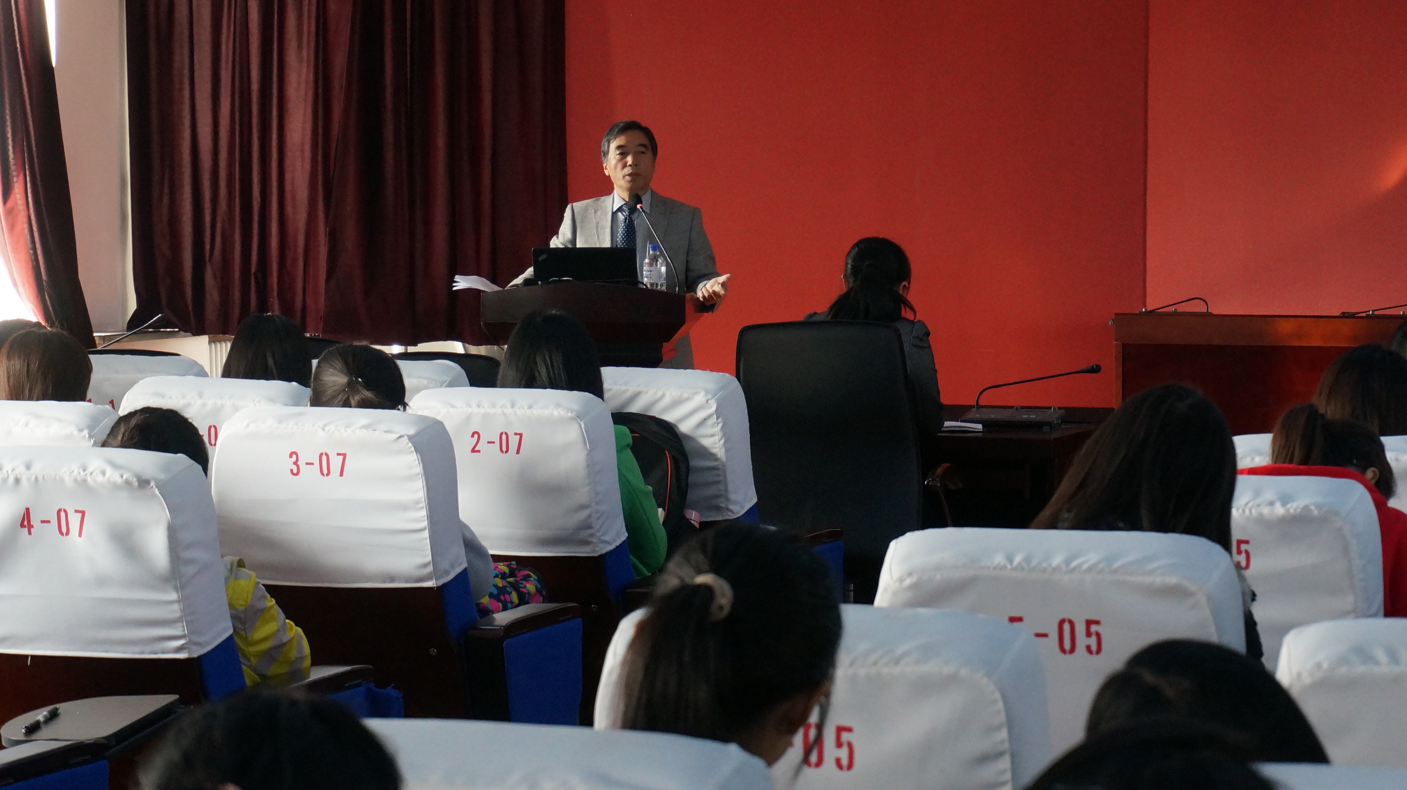 于10月8日上午8点在外语楼同声传译报告厅举办科学道德与学风建设专题讲座。讲座由博士生导师宿久高教授主讲,副院长张玫玫教授主持,2014级全体研究生新生参加了讲座。
