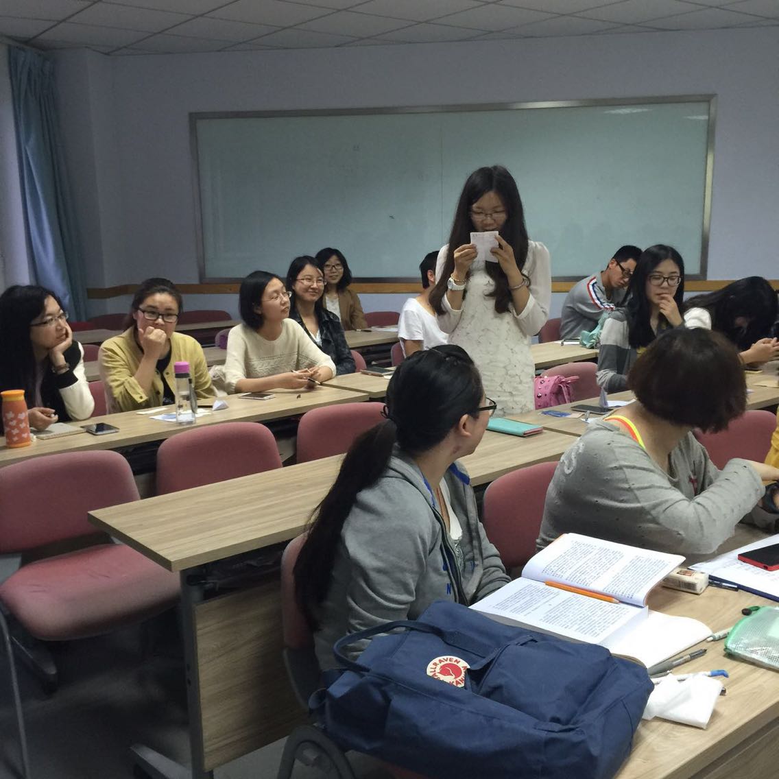 2014级研究生在外语楼216室举办了“心灵沟通主题班会”活动,此次活动和研究生会成员心理培训活动结合,让学生中更多骨干力量加入到基层心理辅导工作中来,这一活动也得到了学院老师的鼓励和支持。