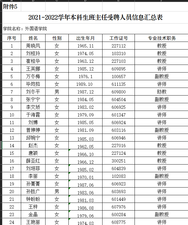 按照《工口漫画 本科生班主任队伍建设试行办法》要求,根据工作安排,经个人申报、系里推荐和学院评审,拟确定英语系周晓凤24人为工口漫画 2021-2022学年2020级、2021级班主任,具体名单见附件。