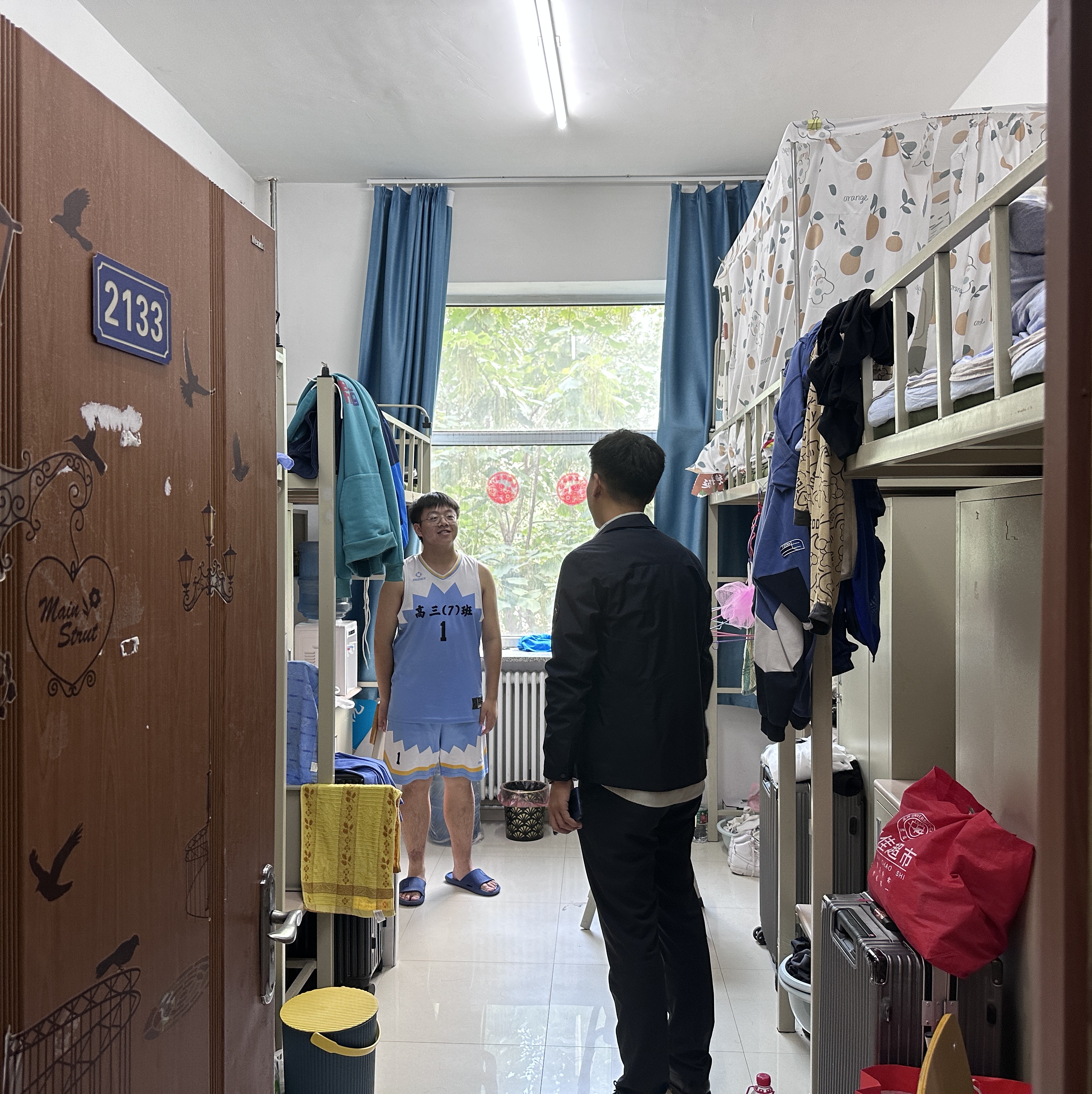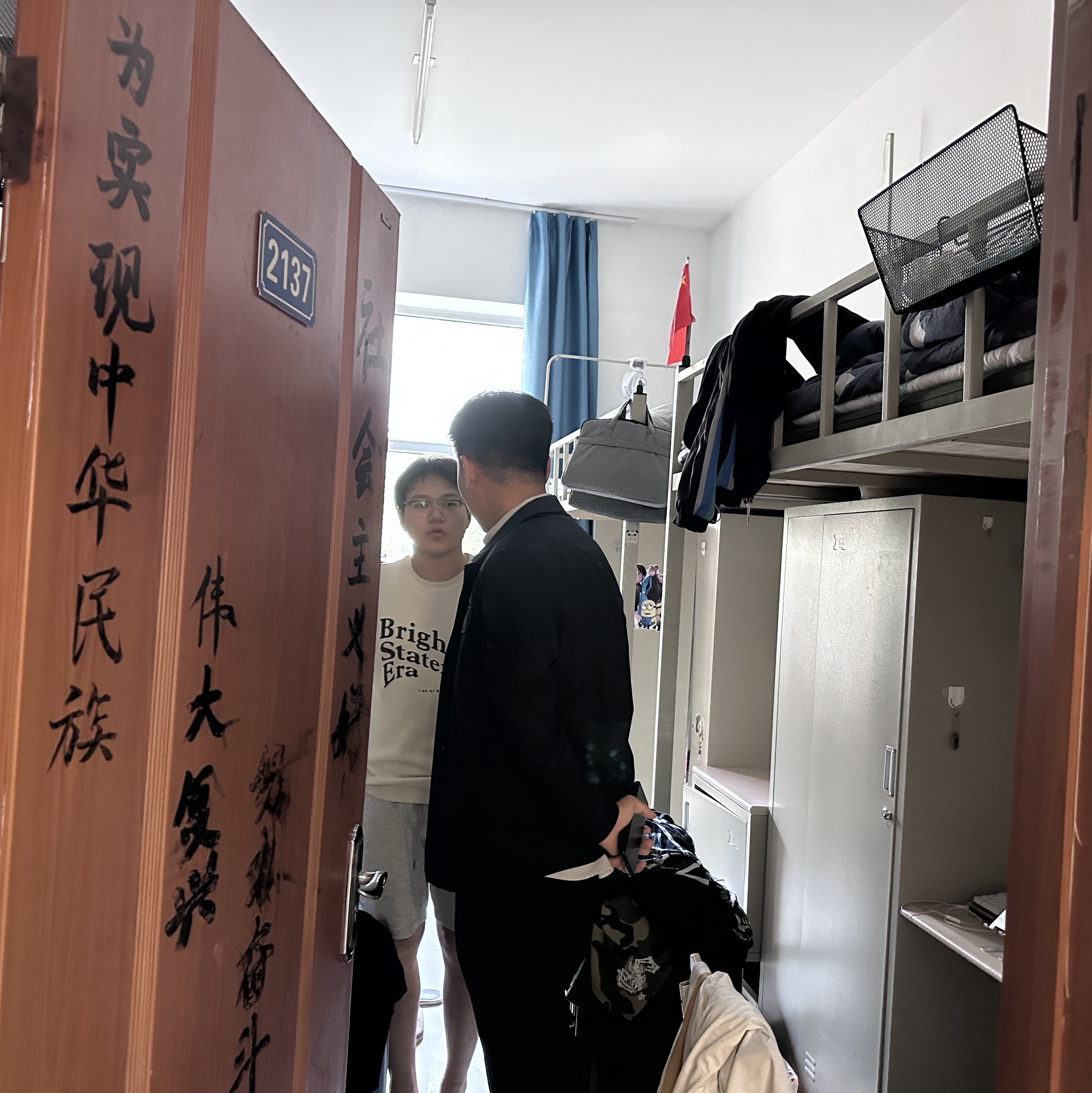 走访过程中,辅导员刘宇与同学们亲切交流,详细了解大家的学习生活情况,认真查看寝室卫生情况,逐项排查安全隐患,叮嘱同学们要提高安全意识,严格遵守学校假期学生管理相关要求。希望同学们合理规划假期时间,共度健康、平安、快乐的国庆假期。