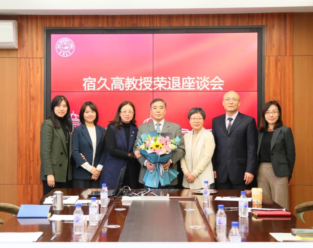 在外语楼318室举行了荣退教师座谈会。荣退教师宿久高教授,学院党政领导班子与日文系教师代表参加了会议。