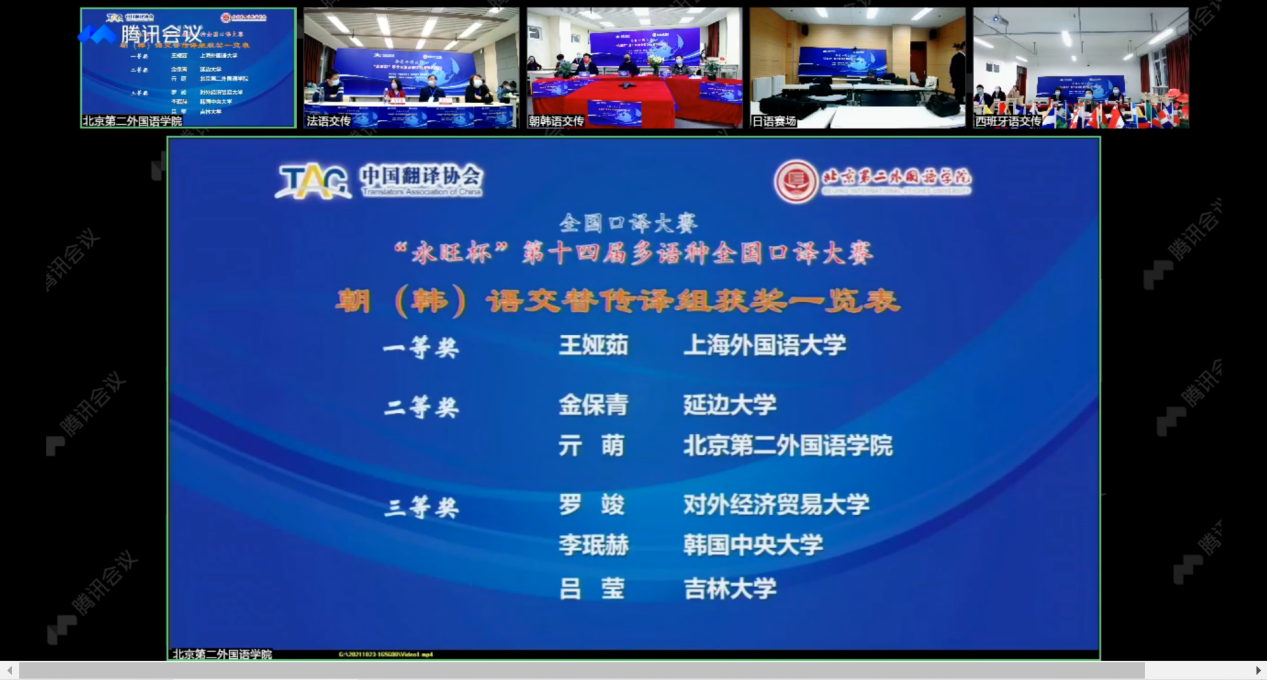 翻译硕士朝鲜语口译专业吕莹同学荣获朝(韩)语交替传译组三等奖,取得本系历届参赛最好成绩,吕莹同学本次大赛指导教师为朝鲜语系王艳丽老师。