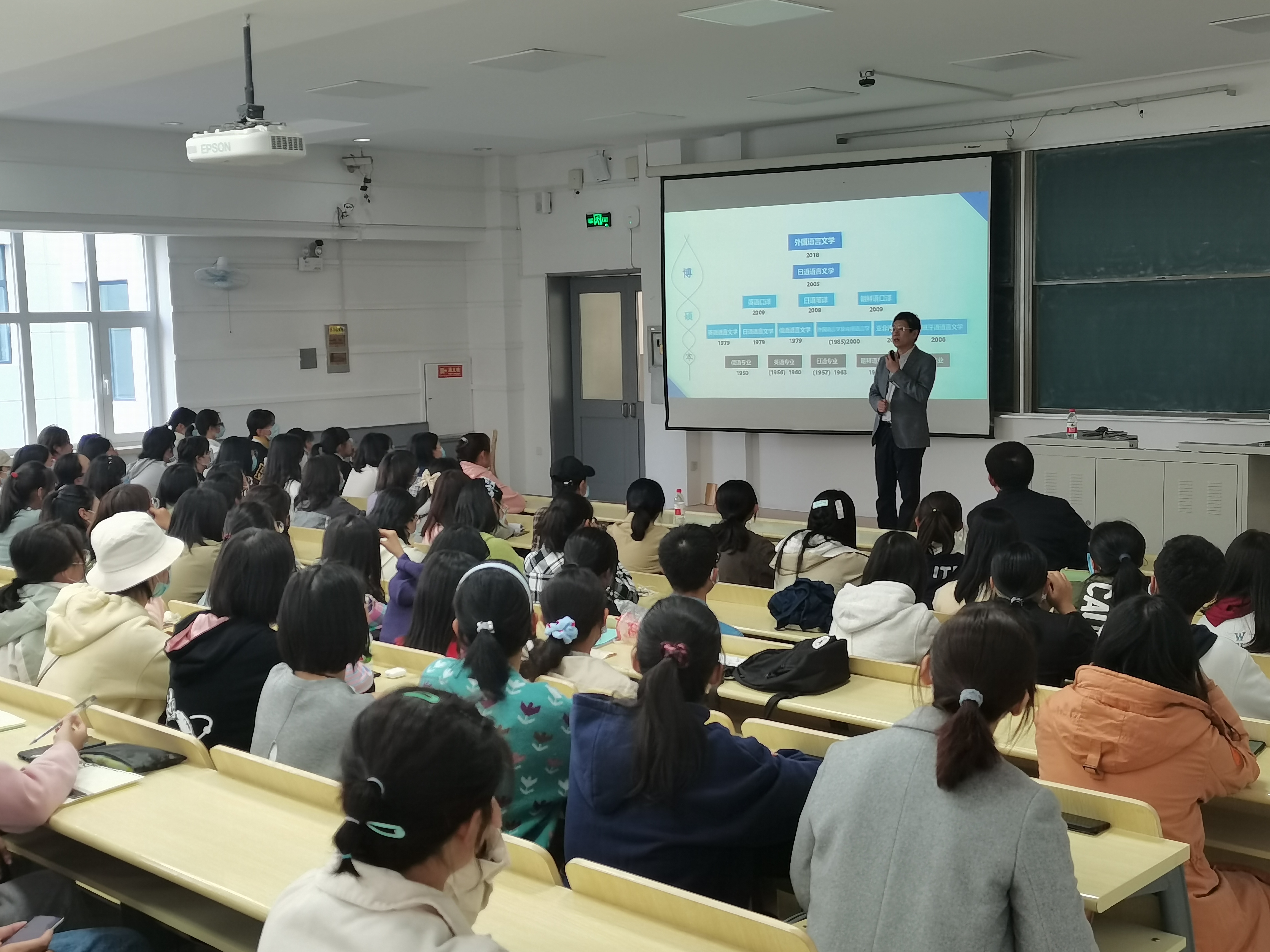 刘昌松通过引导新生思考“学习”一词的含义阐述了在不同人生阶段学习性质的差异,强调大学需要学生由被动学习的模式向主动学习的模式转变。他结合自身经历指出,外语学习者不能把目光局限在所学专业上,而是应当掌握多方面知识与技能,努力提升自身综合素质。随后,刘昌松从主动思考、独立思考、换位思考三个方面强调了思考对于大学学习的重要性,并就新生接下来的专业学习提出了具体建议。