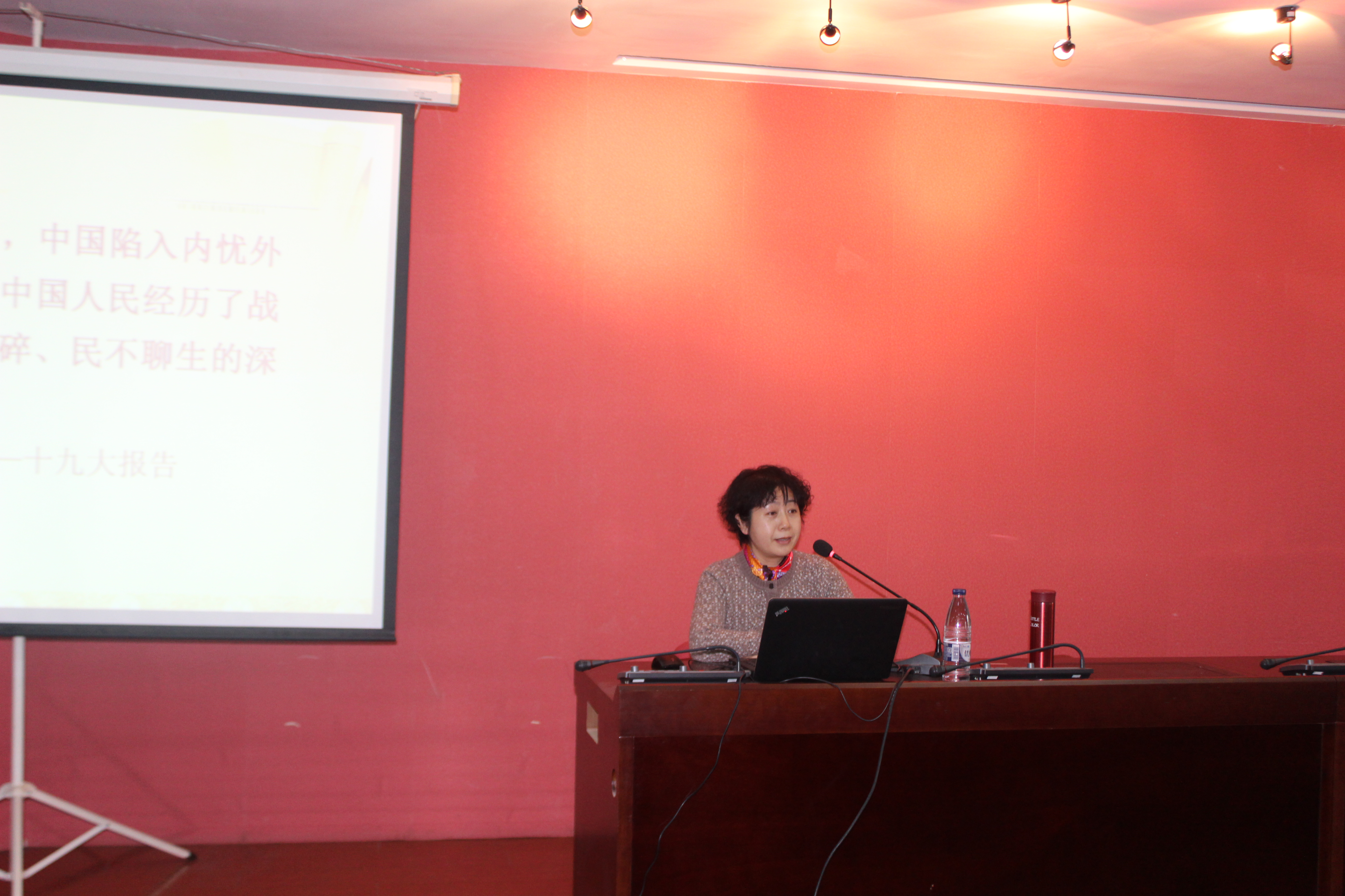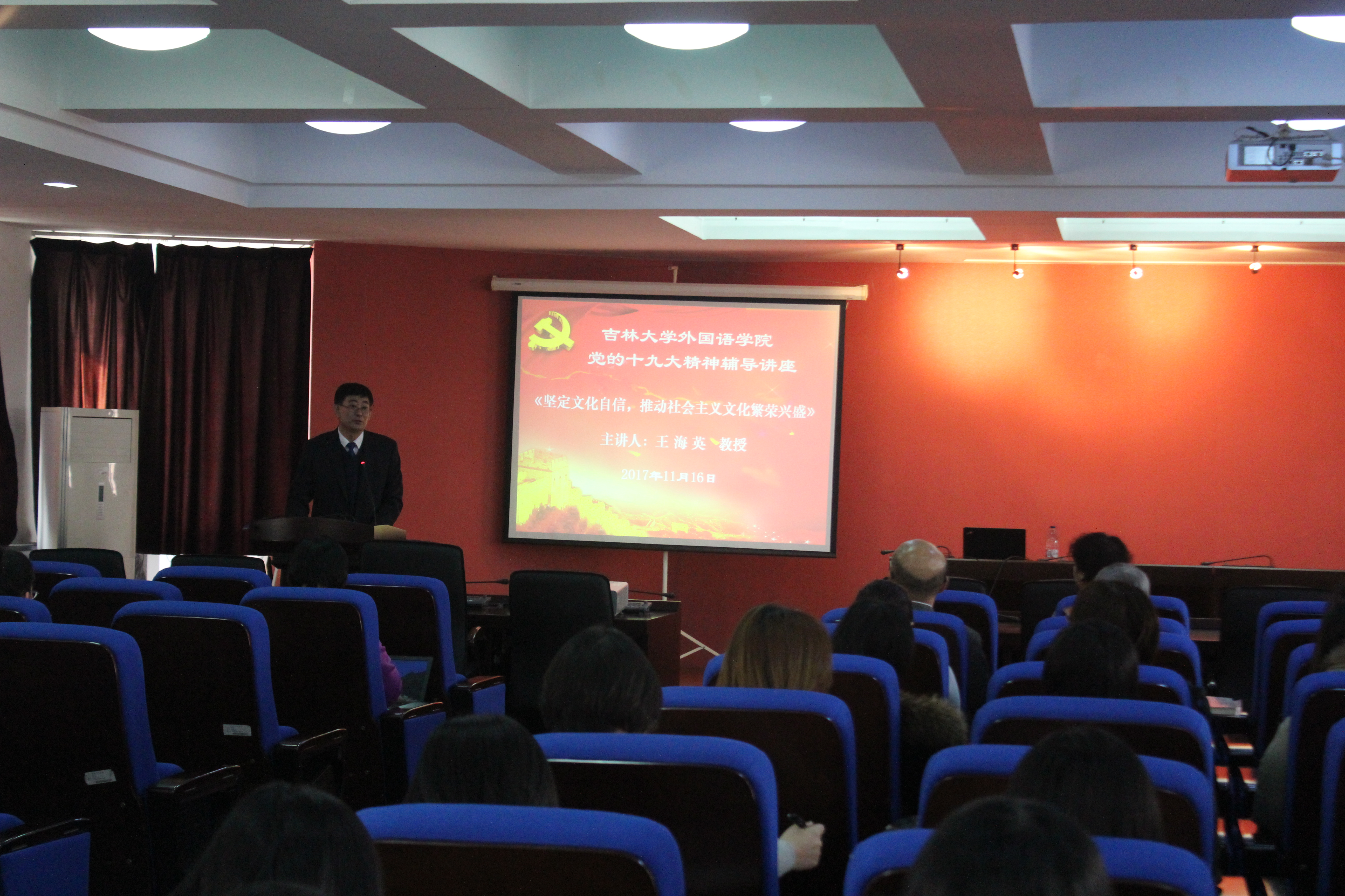 党委学习十九大精神辅导讲座在外语楼500报告厅举行。本次讲座邀请到吉林省委党校哲学教研部主任王海英教授,她以《坚定文化自信,推动社会主义文化繁荣兴盛》为题,对十九大报告的内容做了解读。讲座由院党委书记刘昌松老师主持,工口漫画