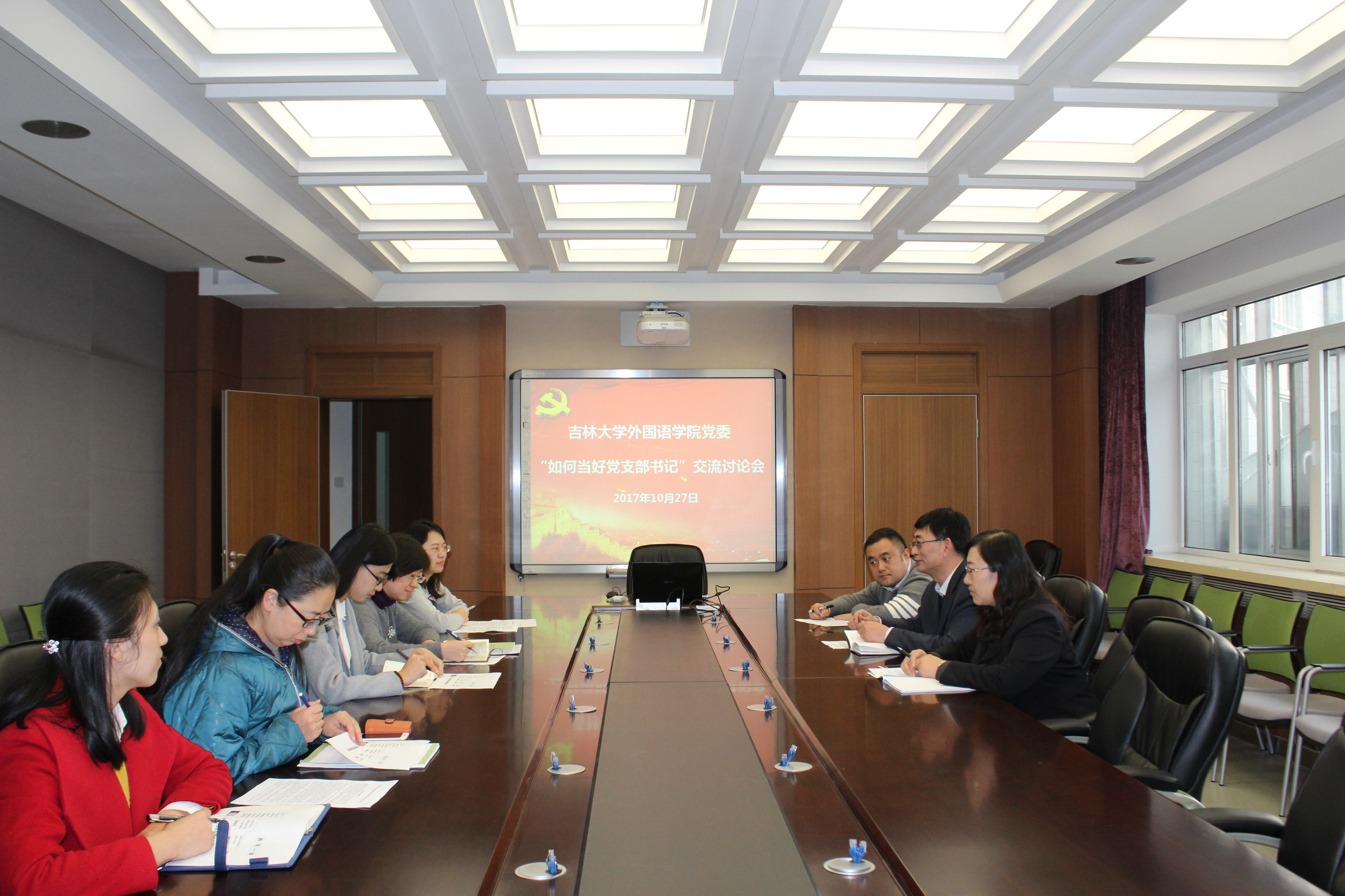 党委组织教工党支部书记开展培训交流讨论会,学院党委书记刘昌松、党委副书记兼副院长白宇,以及各教工党支部书记参加了会议。