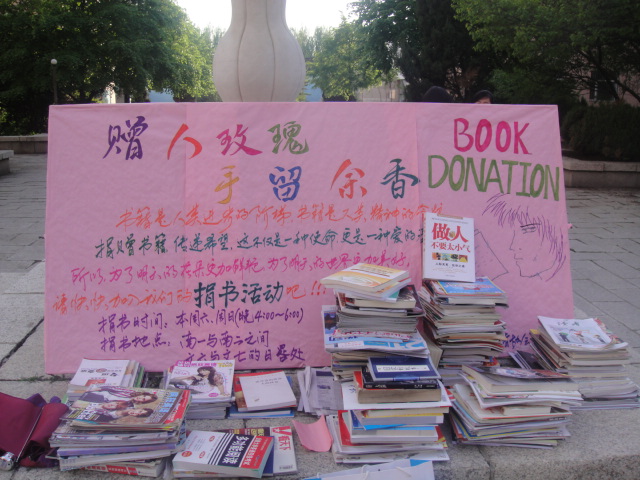 本次活动分为两个场地,分别设在文苑六、七公寓之间和南苑一、二公寓之间。活动伊始就引起了广大吉大学子的强烈关注,大家纷纷捐出自己的书籍,都想为贫困小学生的健康成长贡献一份力量。在两个活动日的短短两个小时内,协会共收到来自全校各学院、各年级同学的700多本图书,现场氛围非常热烈。
