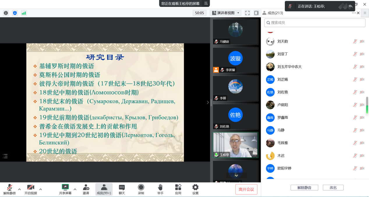 俄文系以及其他院校的师生,线上参会人数共计213人。