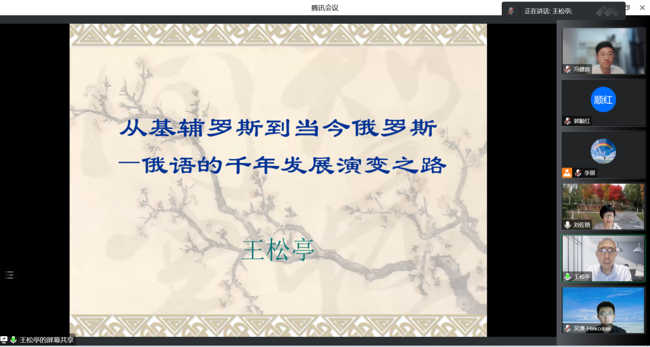 邀请,2022年9月16日19时,战略支援部队信息工程大学教授、博士生导师、博士后合作导师、教育部高等学校外语教学指导委员会委员、俄语分委会副主任委员王松亭老师在云端通过腾讯会议平台做了一场主题为“从基辅罗斯到当今俄罗斯——俄语的千年发展演变之路”的学术讲座,讲座由俄文系主任李丽老师主持,参加讲座的人员有工口漫画