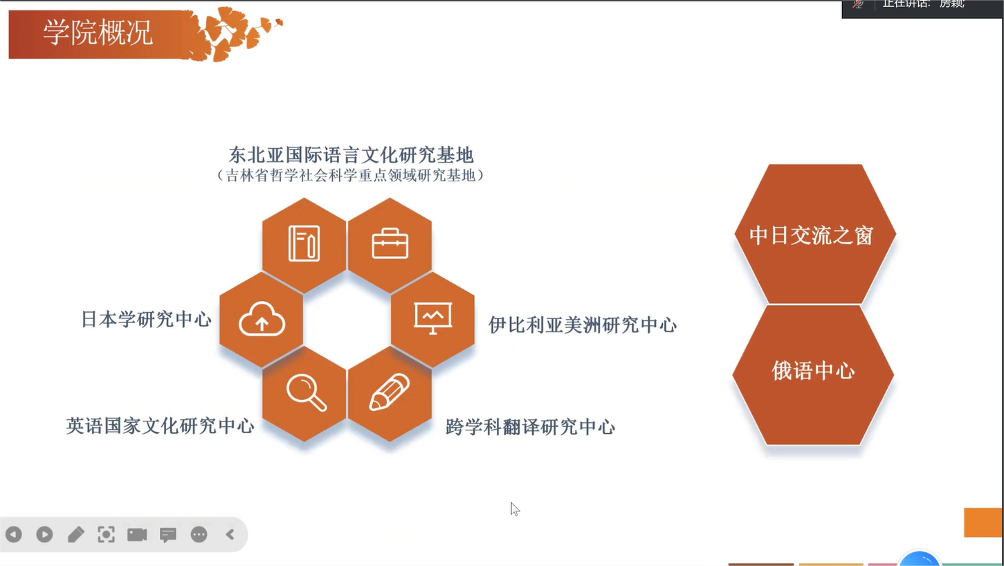 朝文系副主任孟刚副教授介绍了朝文系的培养目标、师资建设以及在教学和科研方面的突出贡献,向同学们展示了具有韩国特色的文化活动,并欢迎同学们前来参与活动。