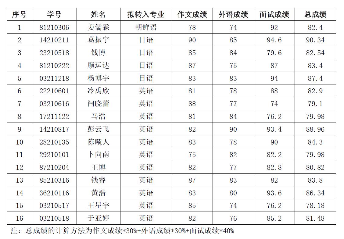 根据学校工作部署及安排,按照《关于公布2021级本科生考核转专业(类)学院考核名单及相关工作的通知》要求,经学院笔试及面试考核,现将考核成绩予以公示,公示期5天。